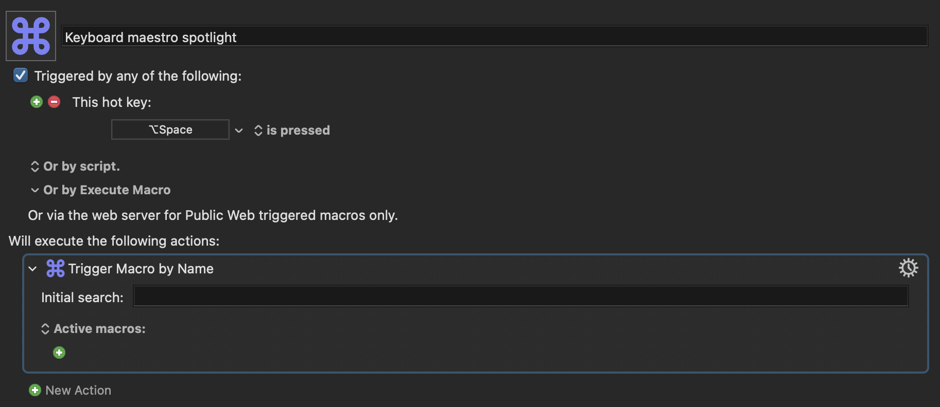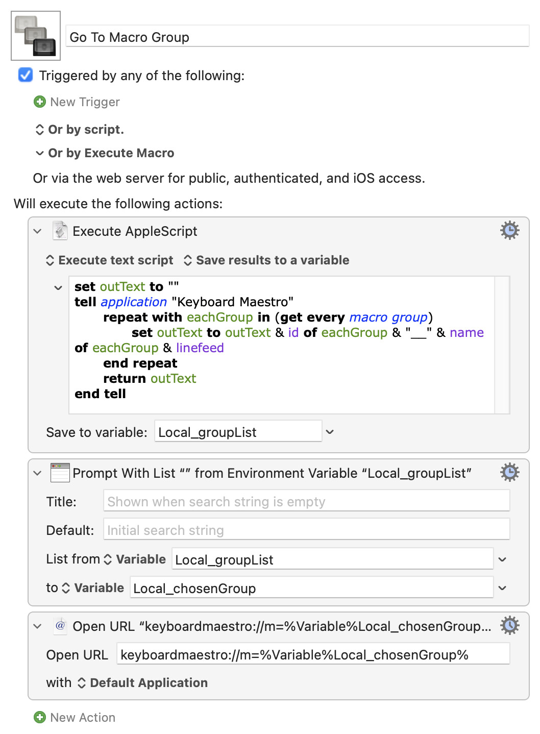 Is there a way to quickly search for macro groups like I can with macros (by using the “Trigger macro by name“ action (After typing in the macro i was looking for → press option + enter → bring you right to that macro in KM editor))