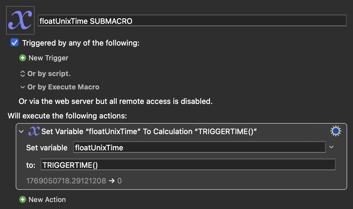When I create a Set Variable action using your formula in the macro with the earlier trigger time the action / formula works (i.e., the action reports the correct trigger time in seconds).
