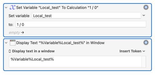 The second action won't usually* happen because the macro aborts with a "Can't divide by zero" error.