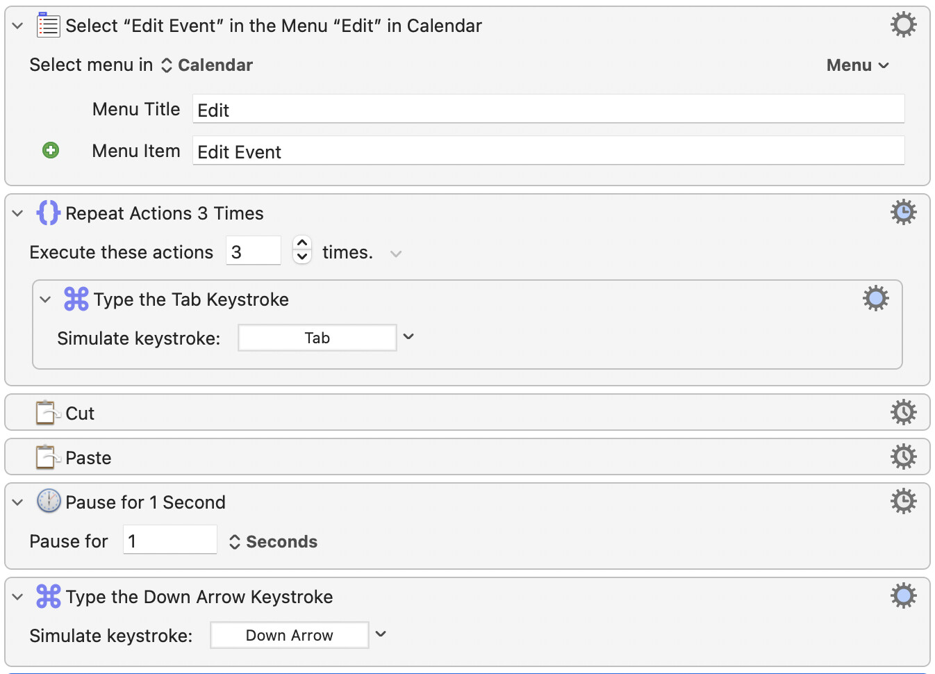 It’s likely that AppleScript copying an event will keep the structured location, so that would likely work as a possible solution for my case, but not for a general solution or a solution in Keyboard Maestro.