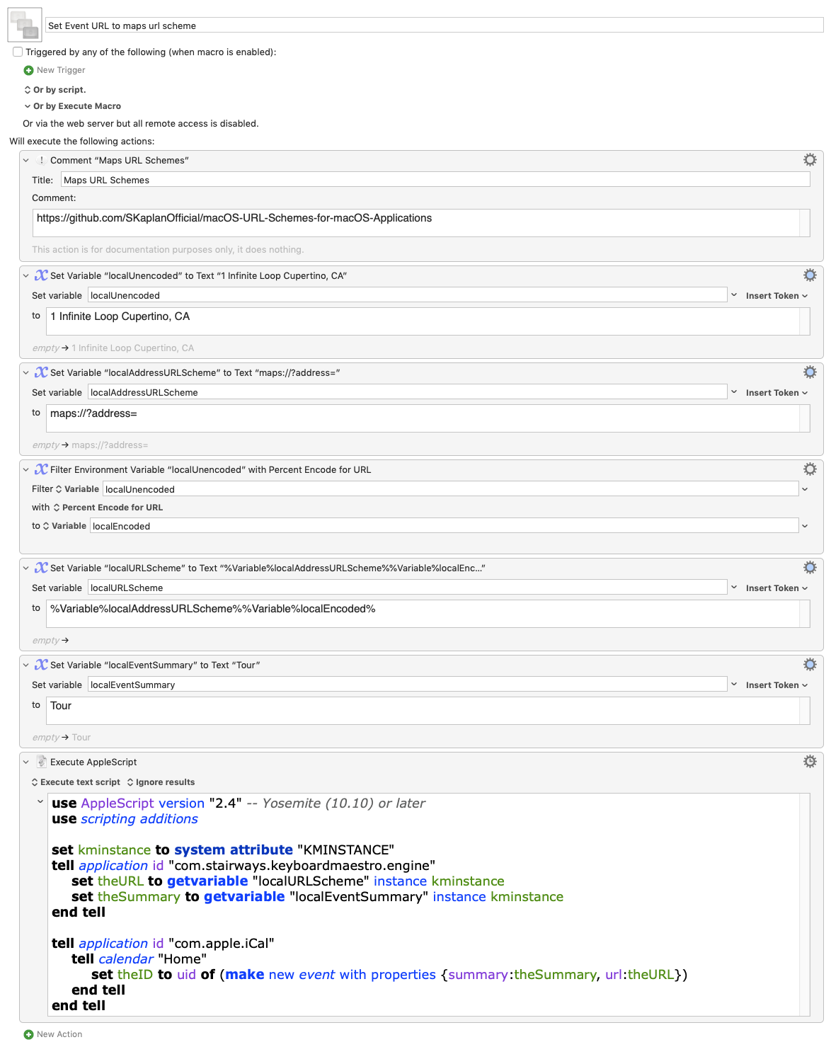 I can set the text (and that is what Keyboard Maestro does in the Create Calendar Event action), but that is just text, it does not actually work as a geographical location. So you can’t navigate there for example.
