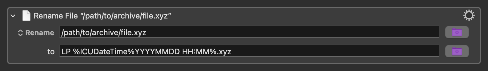 I have an important file, that change all the time and I’d like to periodically copy it to an “archive” folder then change the name to a base (eg LP) with a time stamp.