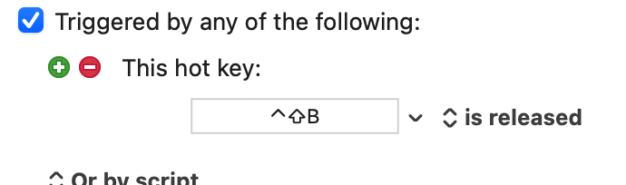 Is there a way that I can keep my shift-control-B shortcut for launching BBedit, but “hide” the shift key being held while the app is launching?