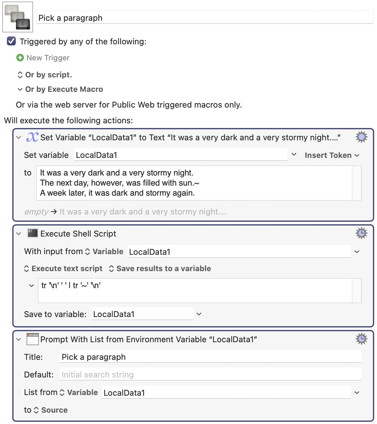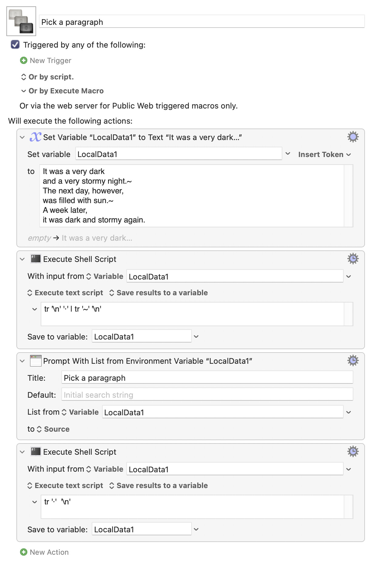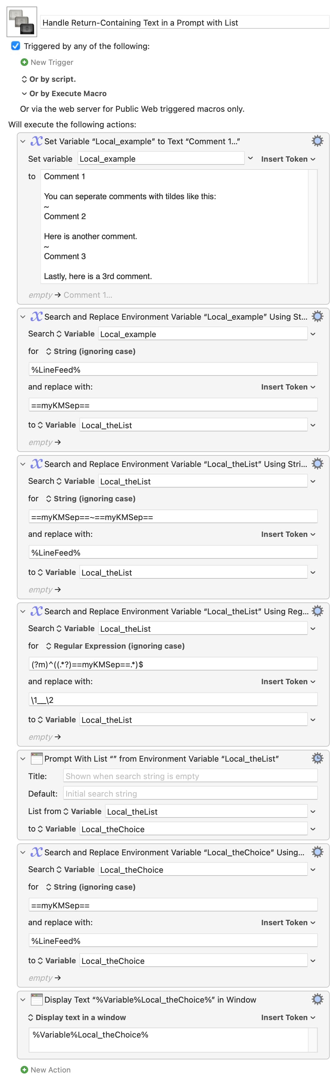 I want to create a prompt with list that asks me to select one of these paragraphs. However, the "prompt with list" action breaks up multi-line text into new list items.
