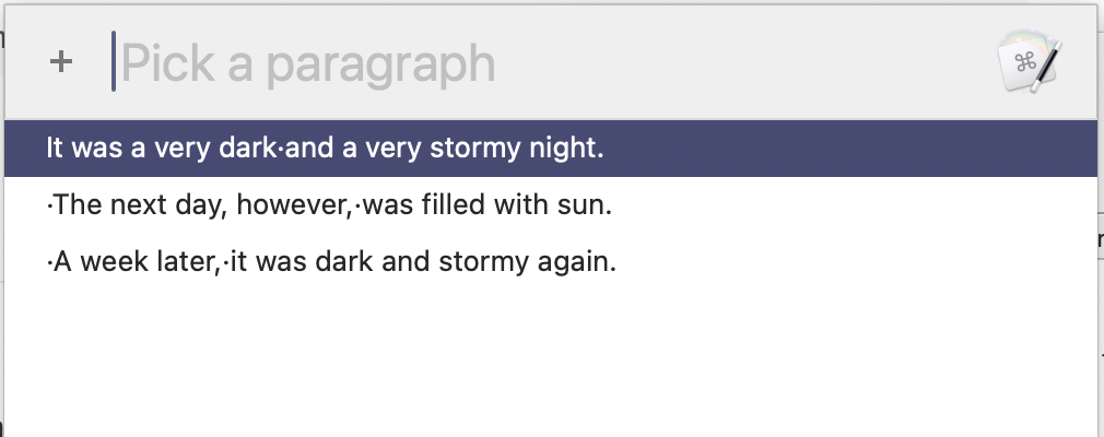 Here's a simple "Search and Replace"-based method that uses "friendly values" to present a list of first lines to choose from, returning the entire chosen "paragraph":