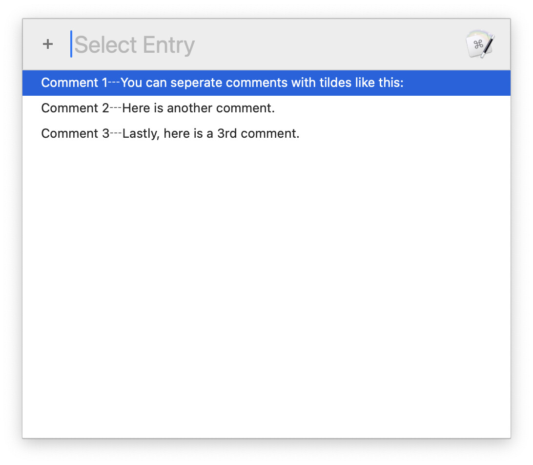 The only really tricky bit is the shell command, which prefaces a line number and two underscores in front of the text—so that when you pick an item, it returns a number. That number represents the position of that text in the original array, which is what's then shown at the end.