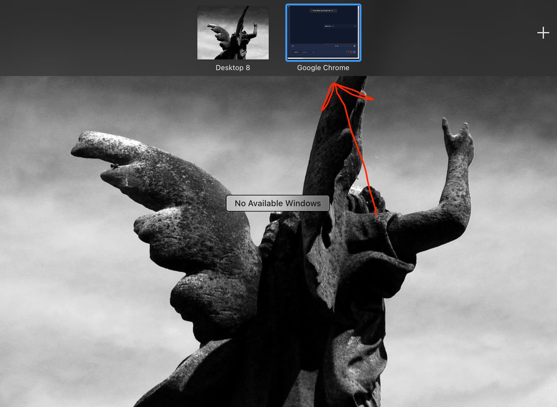 Here's what I'm after: once mission control and the desktop workspaces are displayed, I would like to click on the one that says "Google Chrome", which contains a specific window.