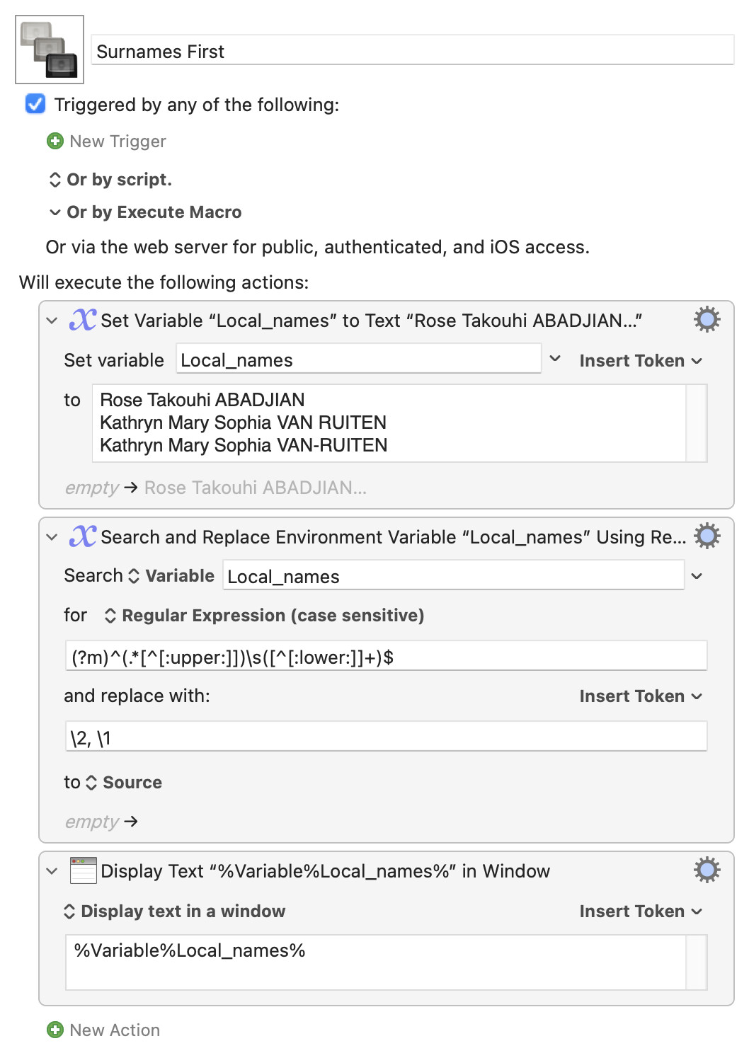 When I grab the name, I then search for it in my desktop software Family Tree Maker, in which the index to look up the name is very much SURNAME, Forename.
