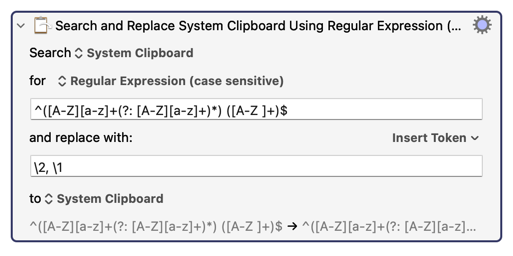 ...replacing with \2, \1 (second match group, comma, space, first match group).
