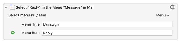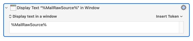 %MailRawSource%Token to be evaluated - Mail does not need to be the frontmost app for a targeted (rather than "Select menu in Front Application") "Select or Show a Manu Item" Action to work
