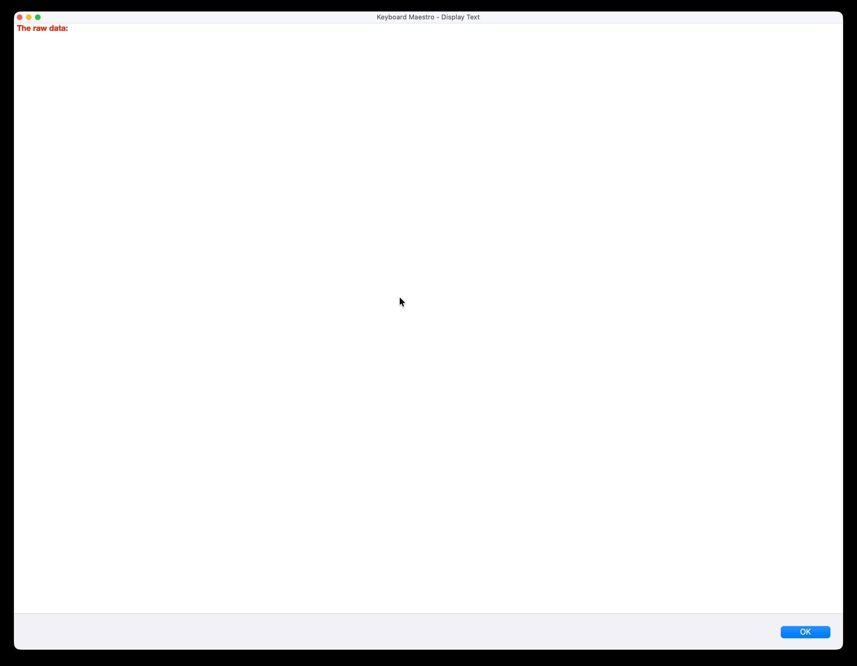 Although finding a workaround is easy (i.e., closing the display text window once it has been displayed, having the raw data display as a notification, not needing / using the display text action anymore as the raw source problem has been solved, etc.), I am curious as to: