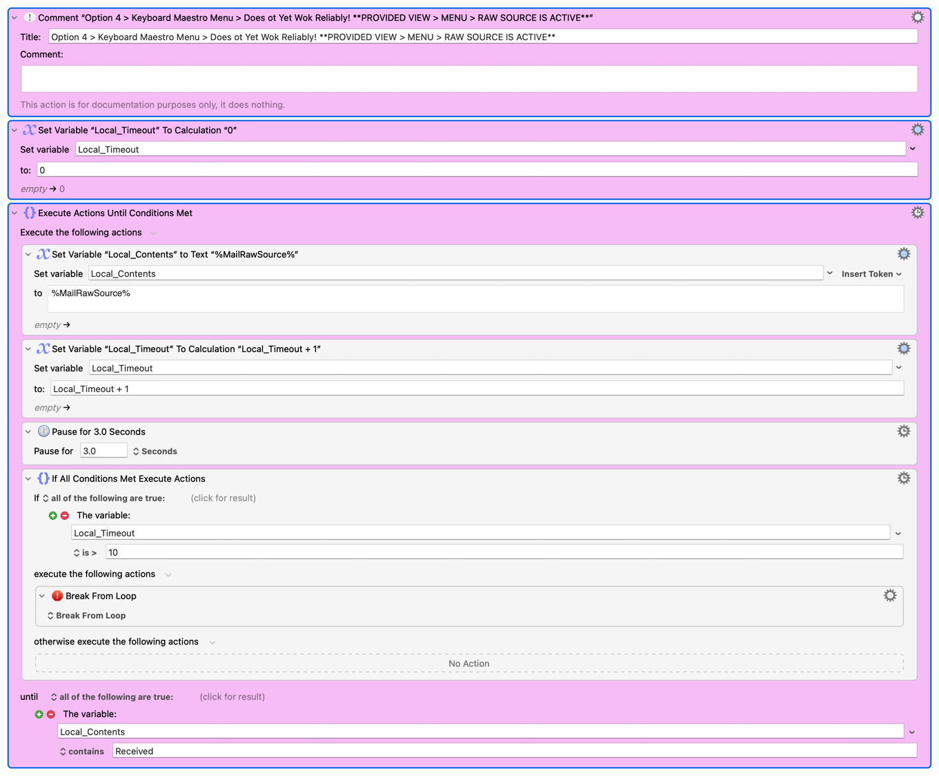 How -- for interest -- would one delay the loading of the %MailRawSource% using Keyboard Maestro actions (i.e., Solution 3 which I do not yet have working)?