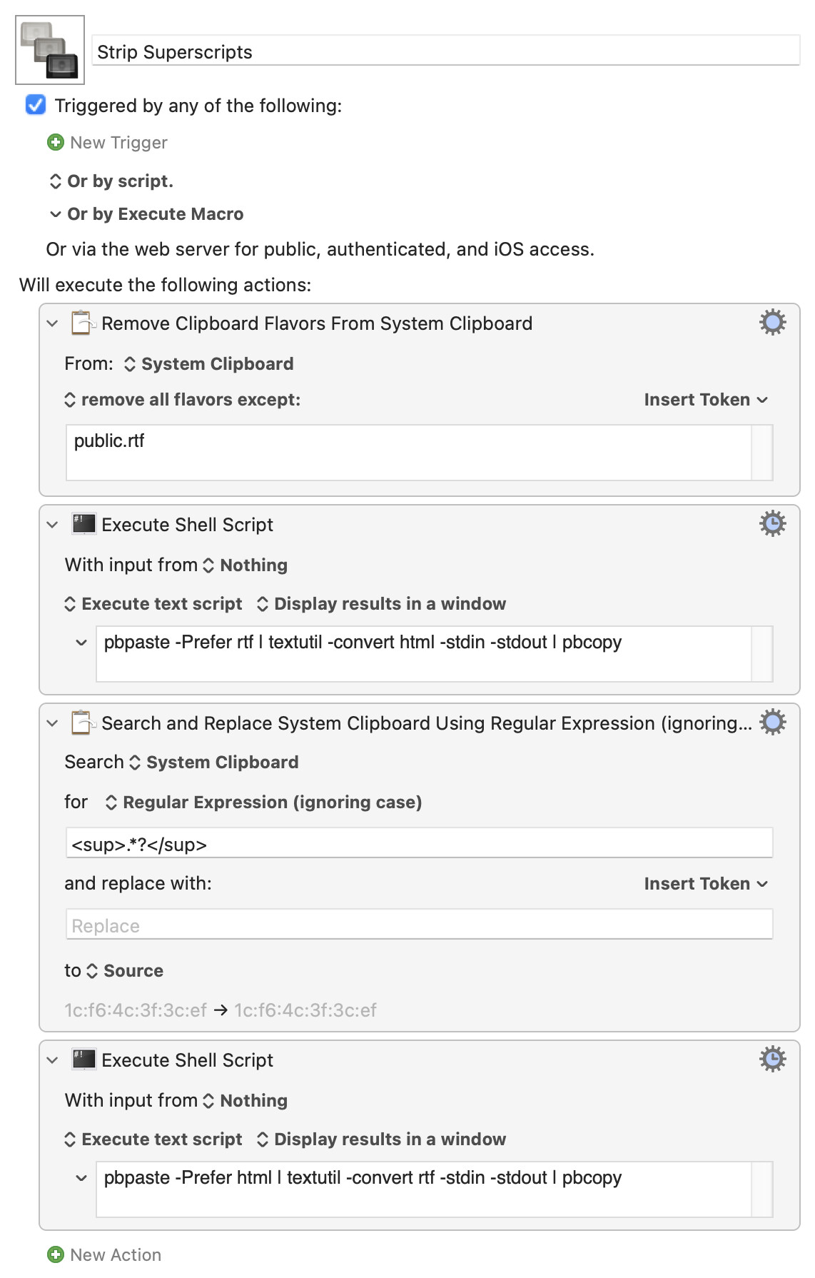 One way I can remove just the superscripts is via Microsoft Word’s advanced find and replace which allows searching for formatting. Should I write a macro to do that? I’m trying to use VBA less and KM more.