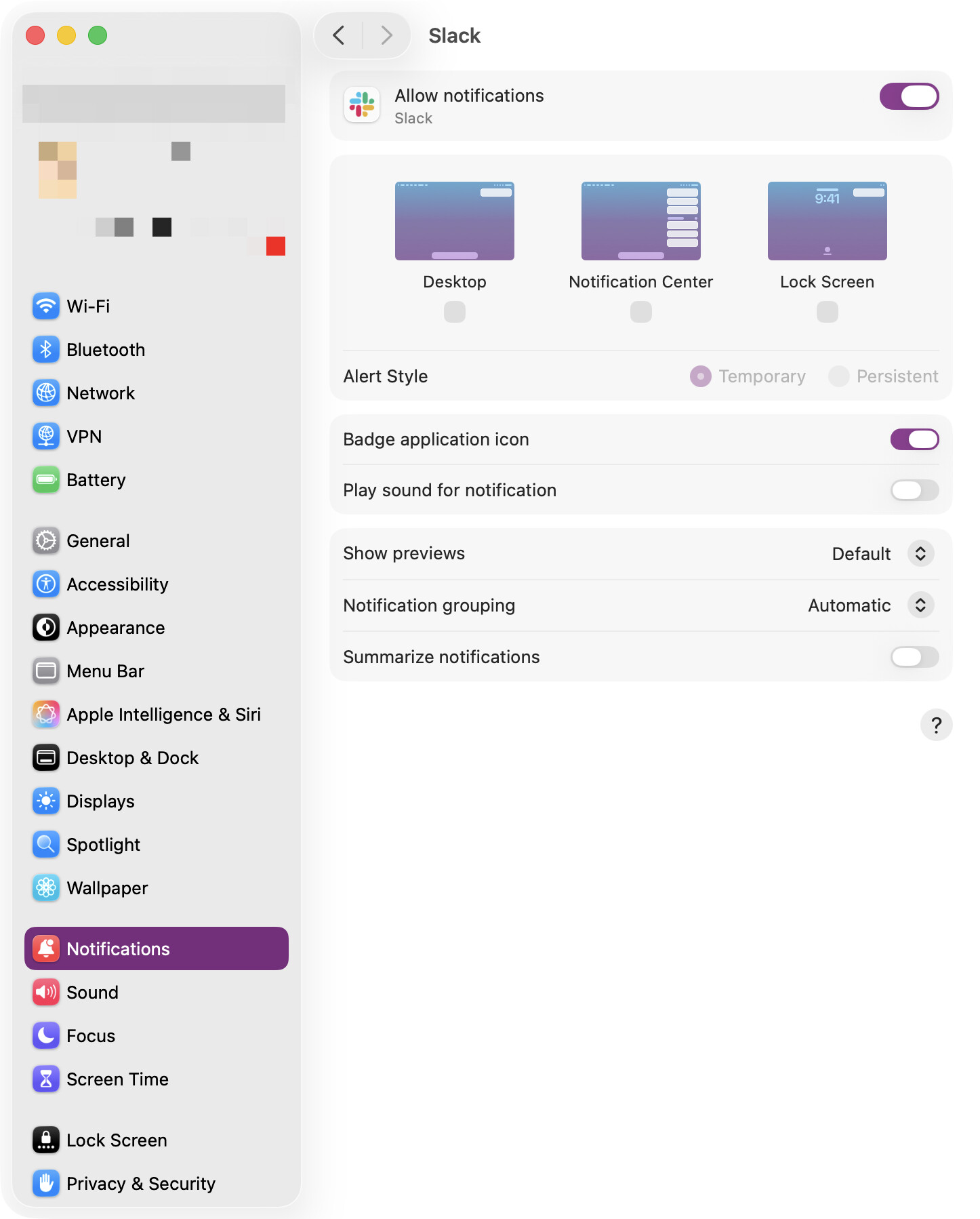 -- Example 1: try to open notifications settings for Slack, then toggle “Allow Notifications” if visible