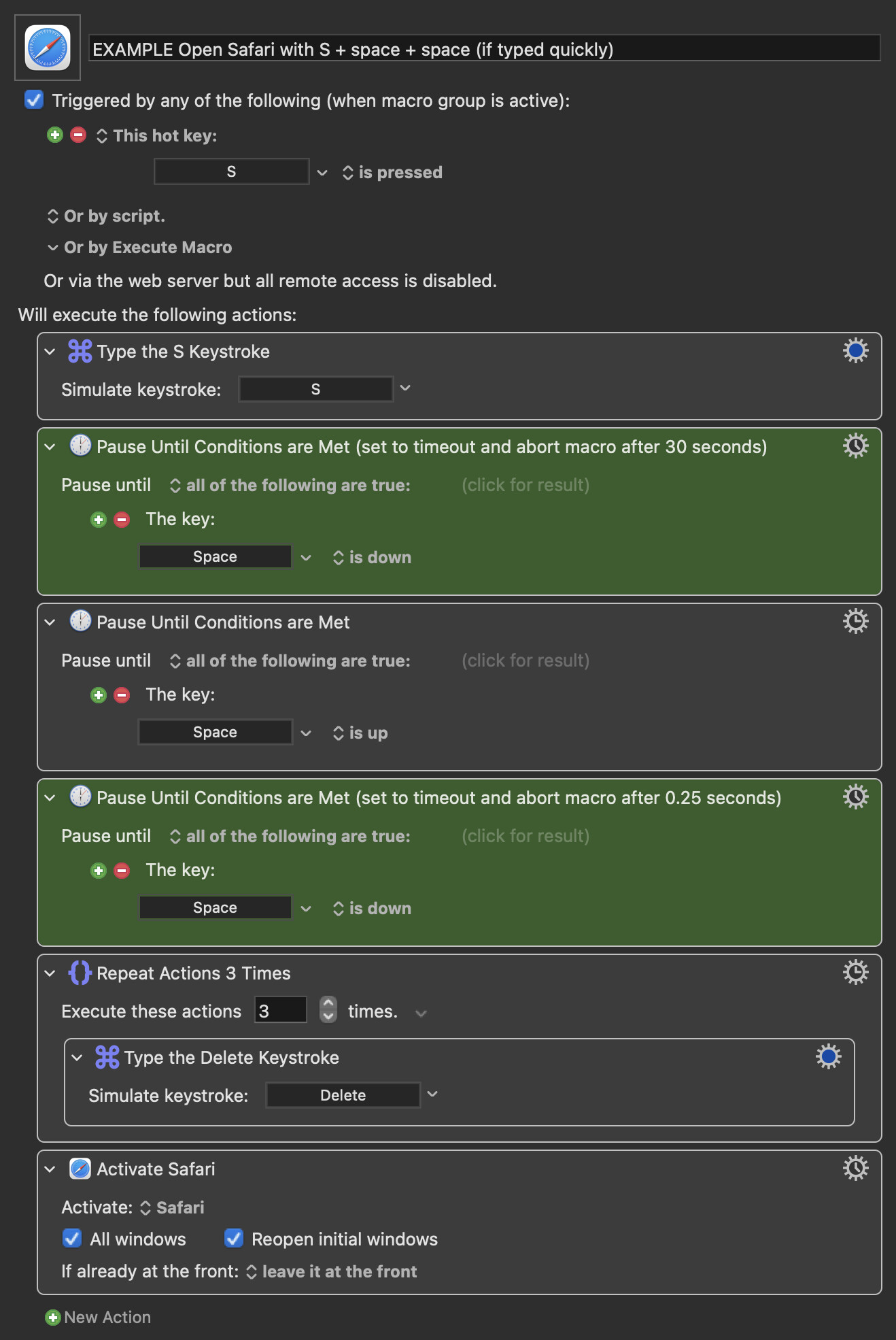 Except we do, because it's often highly relevant! Just as your keyboard constraints are important, so's your choice of placeholder action -- Safari implies a change of context to one where typing is no longer important, whereas A N Other action that happens in the context of Scrivener is another matter. It also opens the door to other potential solutions which wouldn't be worth considering if you did actually want to open Safari.