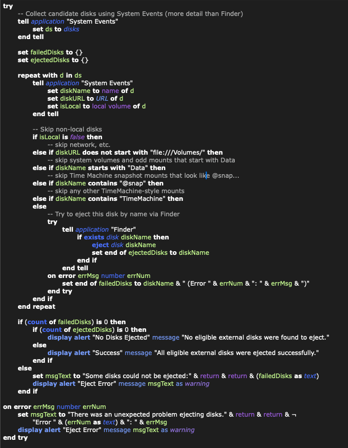 display notification "Successfully ejected all disks." with title "KM - Sleep Computer Macro" sound name "Frog"