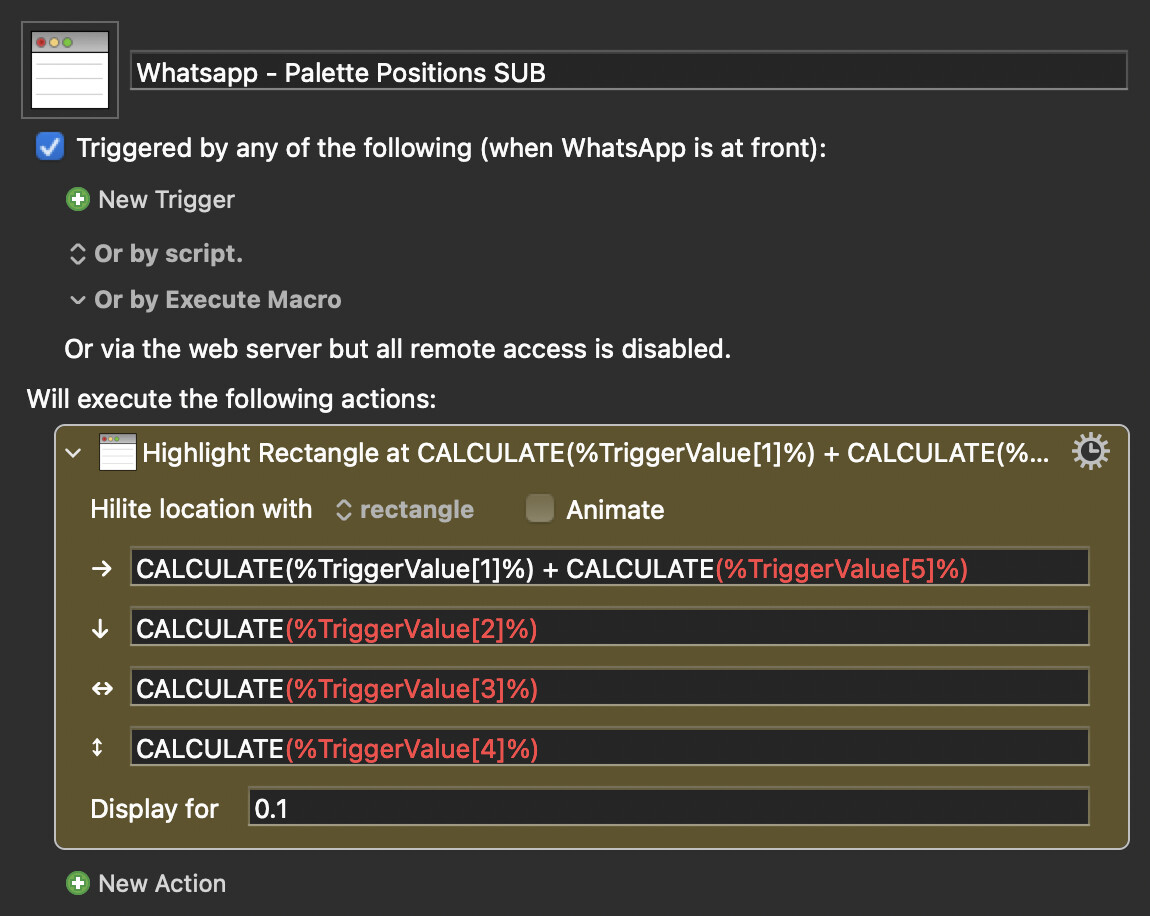 This macro highlights multiple areas on the screen sequentially using the “highlight location” actions, but I want them to all show up at the same time! Is that possible??