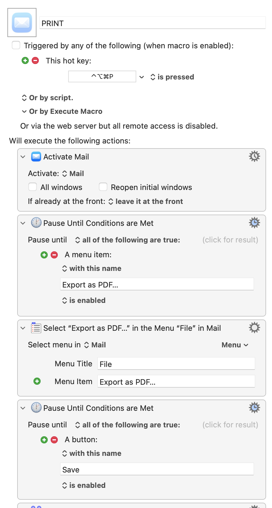 The email printing workflow is a special case. I’ve been using Keyboard Maestro since late 2018 / early 2019, and printing emails has been my last “unfinished project.” ChatGPT has helped a lot here as well.