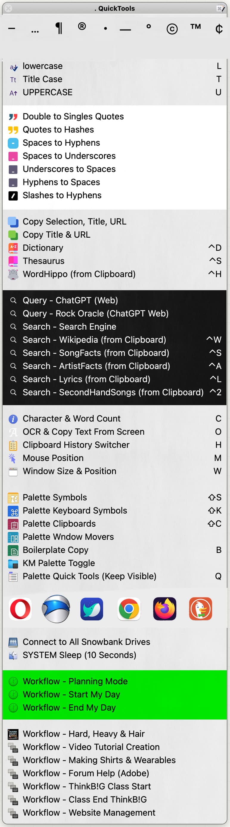 It’s probably a longshot, but @peternlewis it would be almost as awesome as palettes themselves if we could blend column numbers, icon sizes, background colors, and other palette options within sections of a given palette. For example, to accomplish something like my very rough mockup below. Additionally, not shown, I’d love to have the option of adding a border to palette buttons without having to draw it into a custom graphic, thus the ability to make palette buttons look like toolbar buttons when displayed as icon-only.