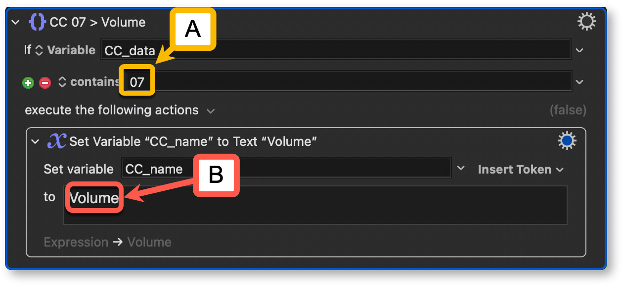 There are over 100 possible controller numbers. After inserting several hundred lines of this type (not only for controllers, but also for SysEx data with even longer and more complex strings), if I want to continue working on it a few months later and change a value, it becomes difficult to understand exactly which string controls what.
