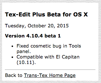 @DanThomas, since this thread has now included Tex-Edit Plus, I have added that to the Topic title, rather than create a new Topic.