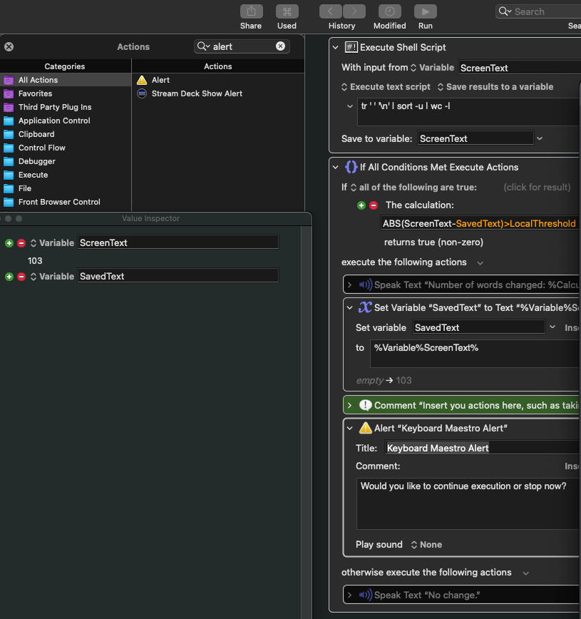 Basically, I'm using OCR to read all the words on the window, and letting the user take an action if the number of "unique words" differs by a certain amount.