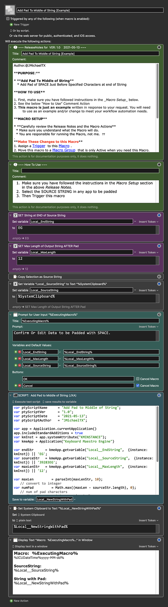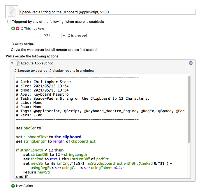 # Tags: @Applescript, @Script, @Keyboard_Maestro_Engine, @RegEx, @Space, @Pad