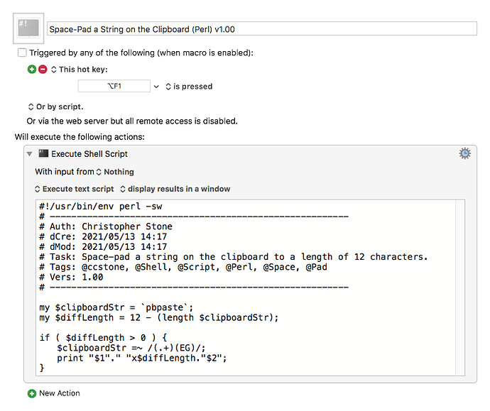 # Task: Space-Pad a String on the Clipboard to 12 Characters (simplified).