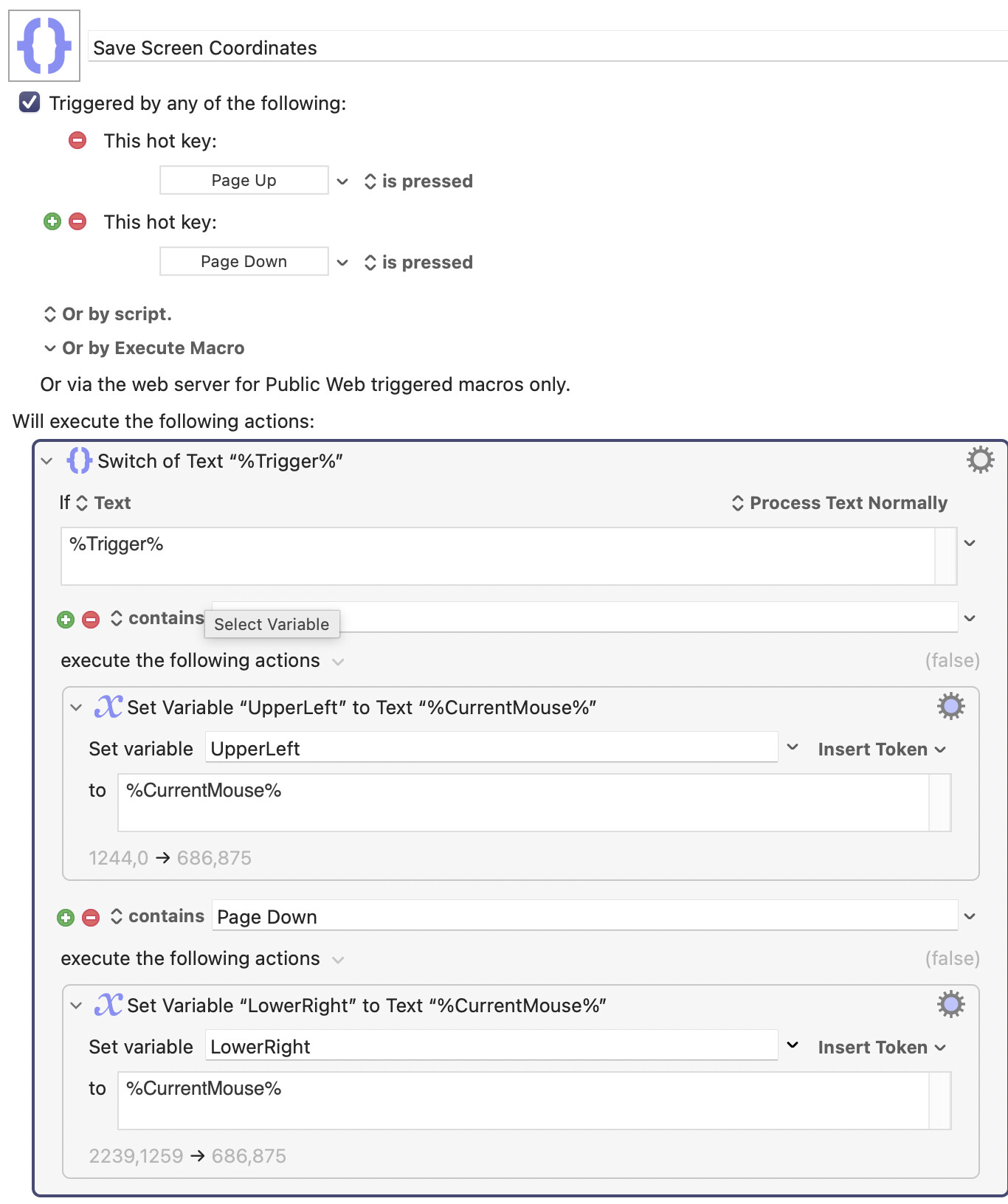 Once you have this macro installed, you can set the corners of the search area using the two keys indicated above. Is it self explanatory? You still need another action to make use of the data in these variables.