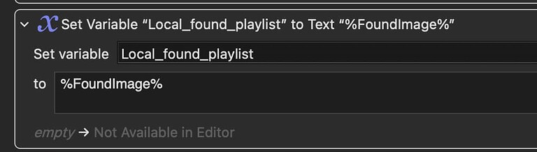 ...isn't doing anything useful. If%FoundImage% carries over from parent to subroutine (Airy? You know way more about image detection than I do) it's the same value as stored in the Saved_to_Music_Rap variable -- if it doesn't carry over then the token evaluates to an empty string.
