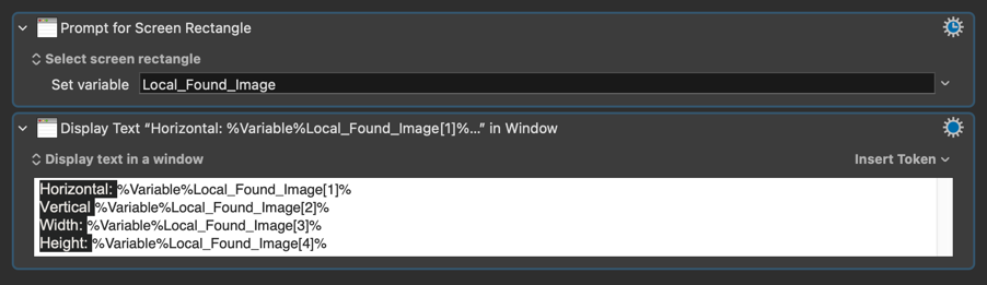 Now for the complex example. Here's a macro, below, that uses a form of recursion combined with OCR to find the location of a word on the screen: (it's normally not possible to find the location of a word in the screen, especially if the word can be in different sizes or colours)