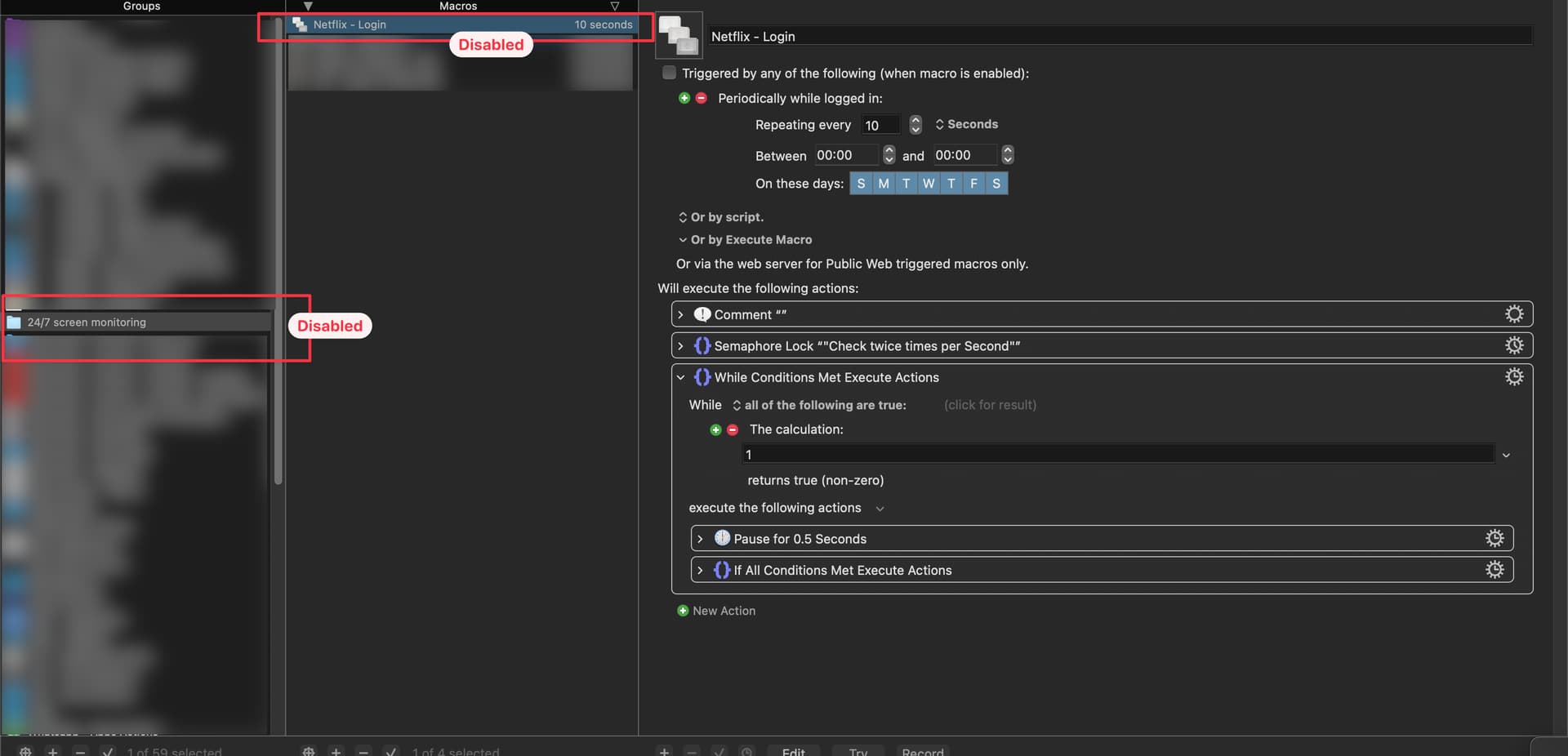 Side Note: When I used the debugger, I had to first disable all the macros with periodic trigger (that repeat every 1 second) and macros that continuously monitor my screen. And I have to quit KM engine then reactivate it to actually disable those macros, which is a pain when I want to use debugger!