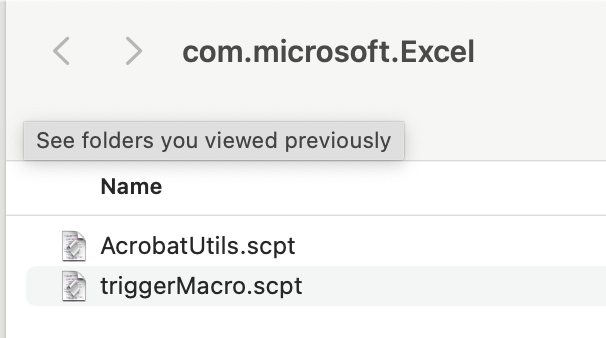 In folder /Users//Library/Application Scripts/com.microsoft.Excel create simple Script