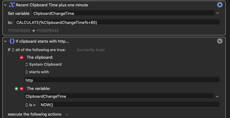 Second calculates current time compared to recent clipboard time plus 60 seconds. In other words "if recent clipboard time was less than a minute ago..."
