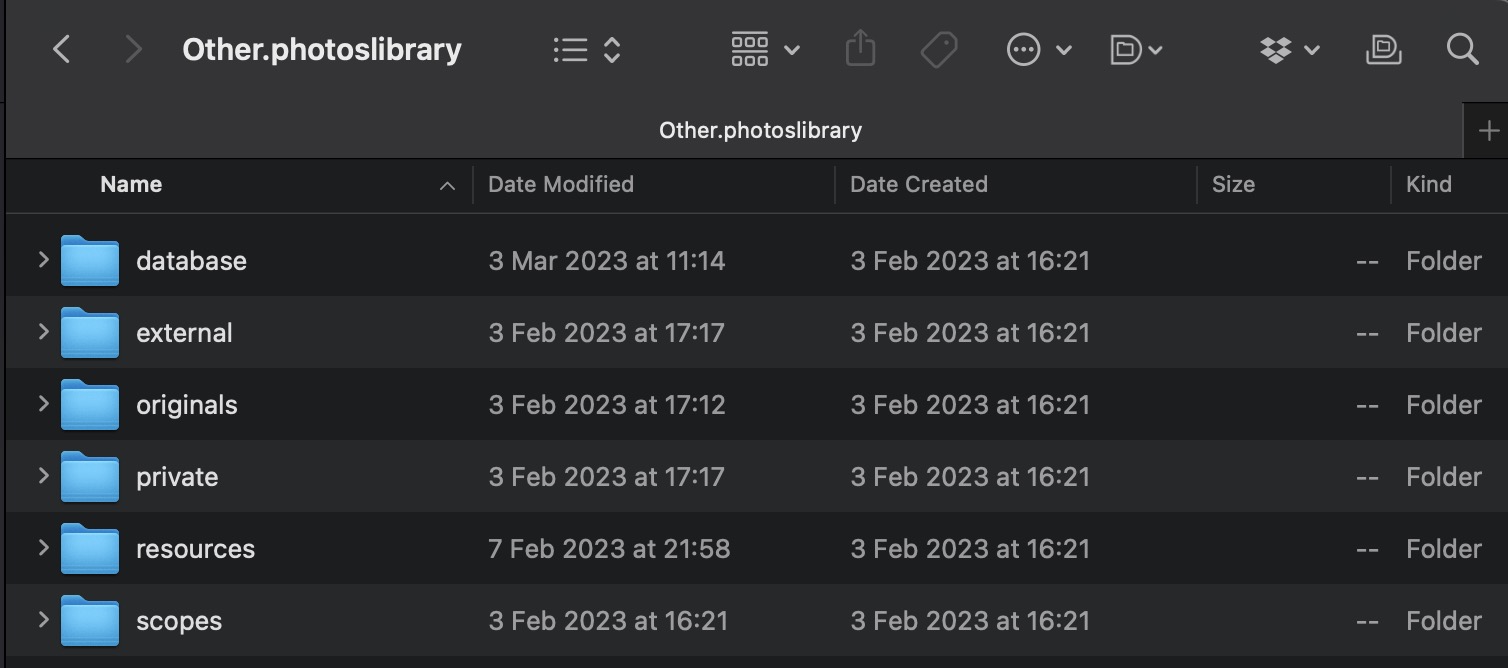 My bad. A library is a database and collection of photos all sewn up in a neat little package with the extension .photoslibrary