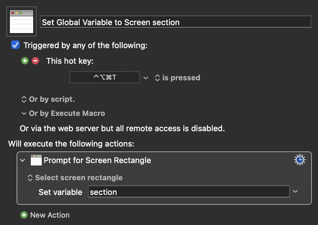 Another macro that resembles the last, only it re-captures the screen capture after each detected change. Both macros are now set up with the same Hot Key trigger, resulting in a conflict palette where you can select which of the two you want to run.