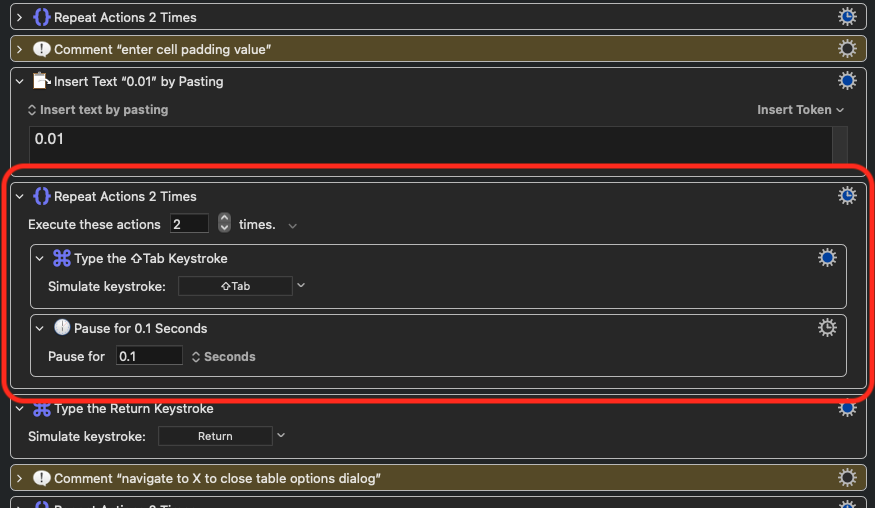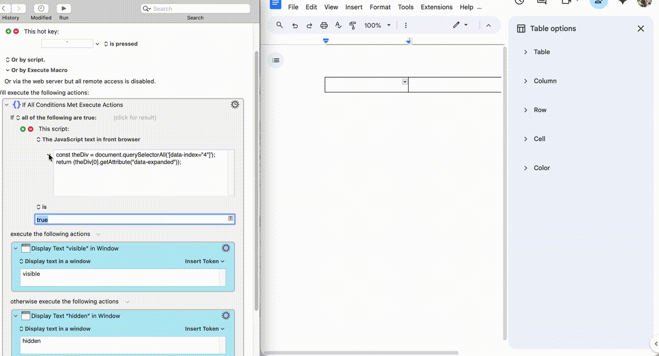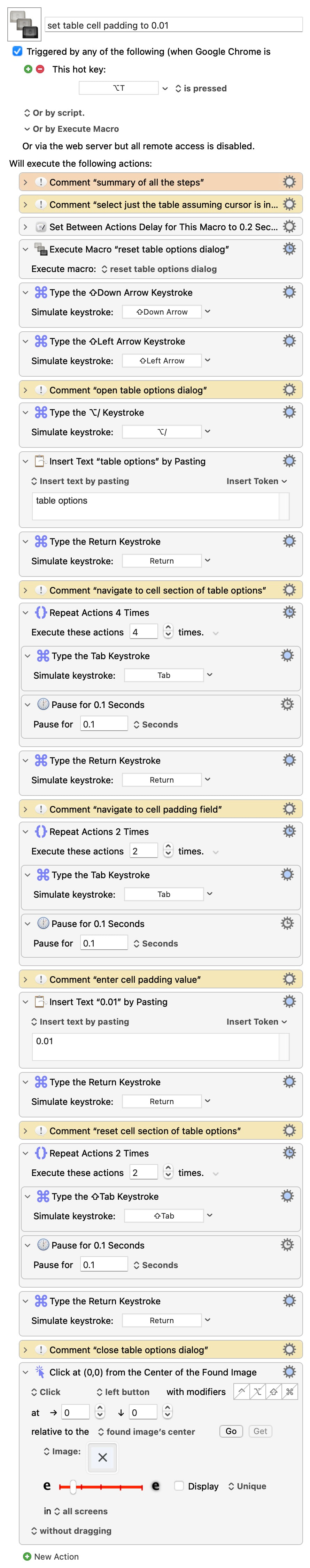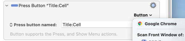 @Nige_S Yes, this is what I was looking for. I made sure the Table Options dialog was visible and used the scan feature of the Press Button action on Google Chrome and picked ‘Cell’ out from the huge list of buttons. Here was the result: