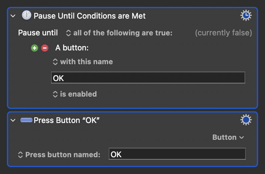 If you're on a version older than 10.2 you can still get the same result by preceding the press a button action with a Pause Until, set up with a Button Condition: