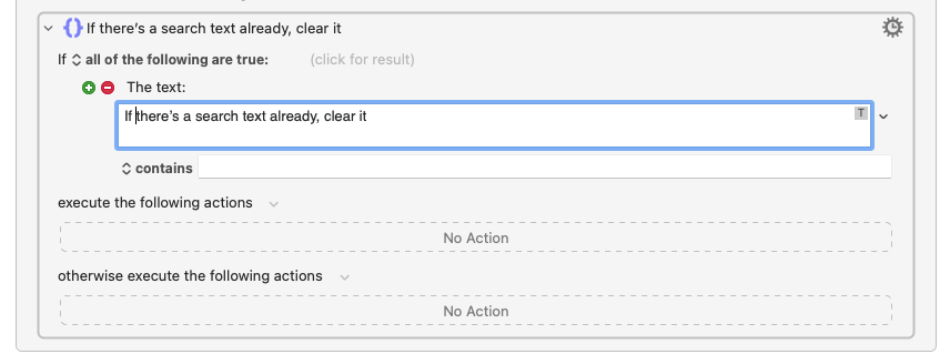 HI, I tried to replicate this but I'm unsure of a few things. What action is the "If there’s a search text already, clear it"? is this a - see screen grab?