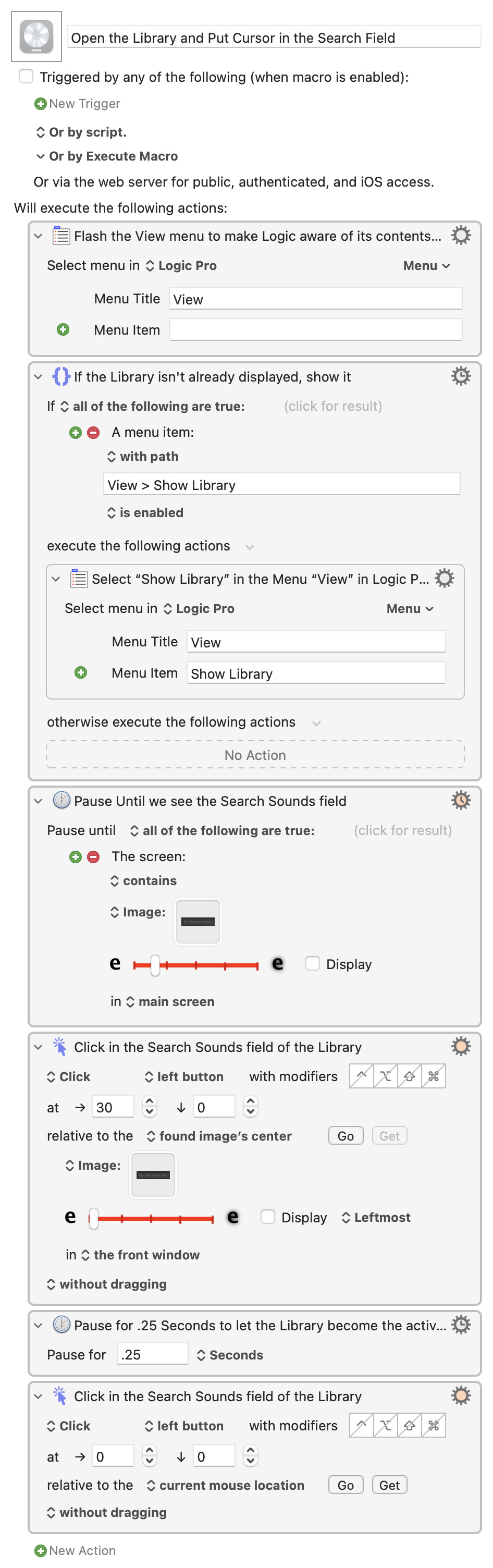 Hi, I replaced the found image of 'setting' in the macro but got the same result I'm afraid. If it helps, I have an M1 max, (that is off to the side and closed and use 2 x monitors instead) that I run with logic.