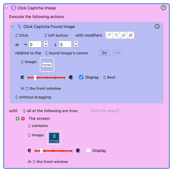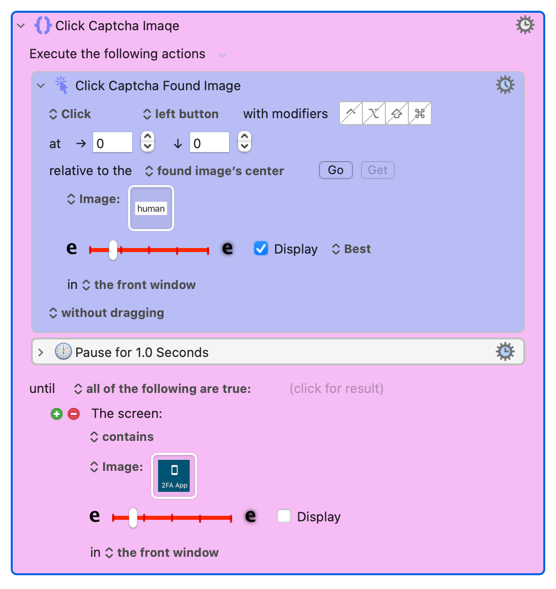 The attached macro fails following successful completion of the action I have labelled “Click Captcha Image”. The next action labelled “Activate Step Two” fails to activate the app “Activate Step Two” or any actions beyond that one.