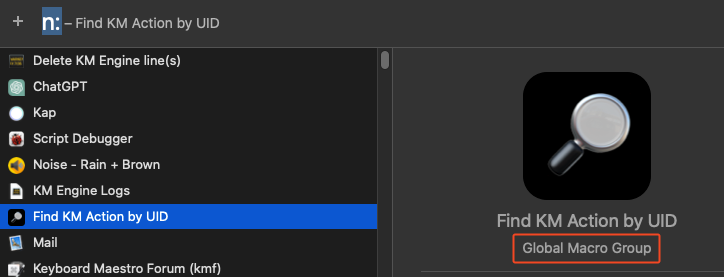 When I want to find a macro, I usually want it after using my "spotlight" macro so I am able to see which macro group it is, so it makes it faster to just find the group and then the macros in that group: