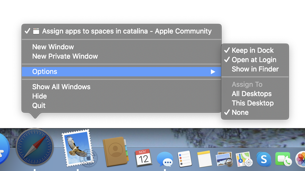Although space-assignment for some apps is certainly beneficial, there are times when windows from these apps need to be visible on other spaces. Movement of such windows with native macOS features is somewhat clumsy, and certainly not done quickly.
