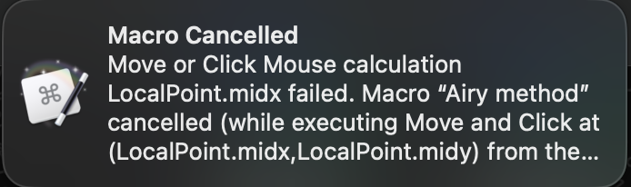 Before I try out what you guys suggested (Subroutine, limiting the area, instance variable etc), could we try and figure out why Airy method is not working too well for me? I like Airy method because I only need one Found Image action (as opposed to 2 or 4 “found images“ in my other methods). If we can find the issue here, I might not need the other stuff.