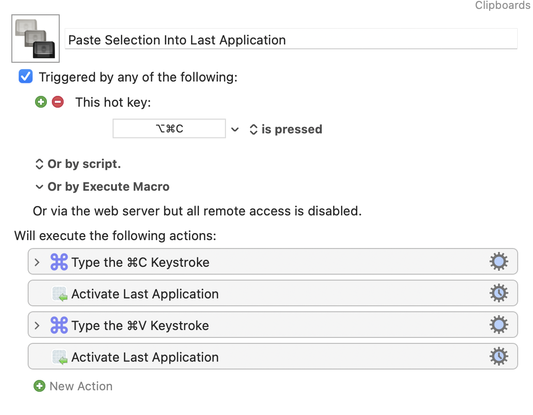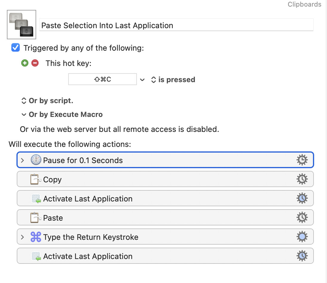 One macro that I really like in principle is “Paste Selection Into Last Application”