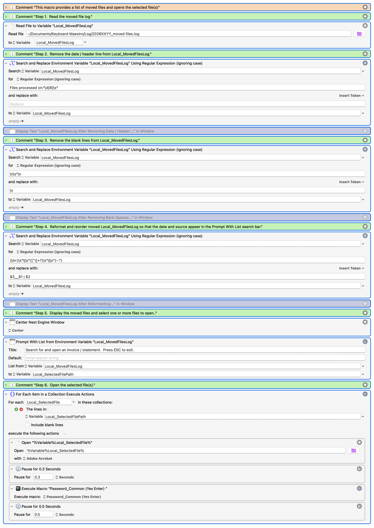The macro that processed this log looks like this: