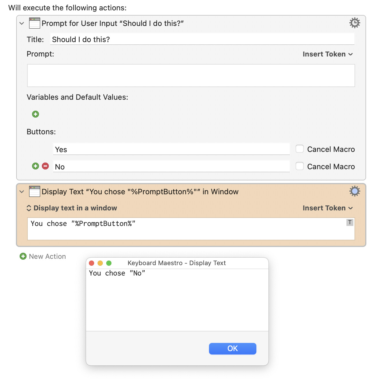 I noticed (and confirmed in the Wiki) that pressing escape results on a failure notification and the macro ending. I worked around this (as the Wiki provided no other solution) by disabling Failure Aborts the macro. Is this the best / common method for so doing?