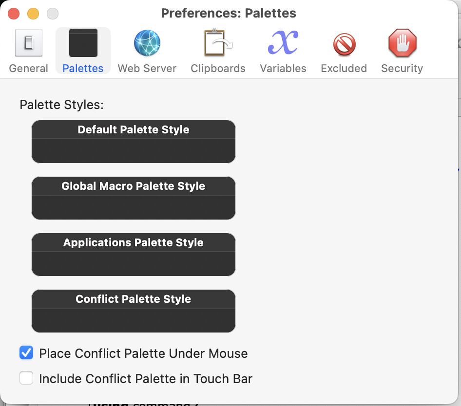The other option is that the conflict palette is being immediately dismissed because of some other macro executing continuously or some other perceived event that Keyboard Maestro Engine is seeing to dismiss the conflict palette.