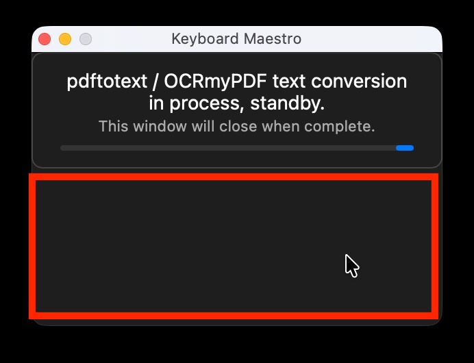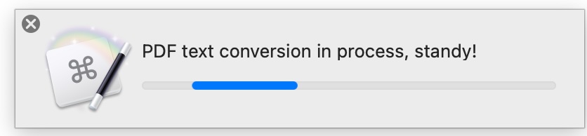 Is there a way to get the progress bar to display a different message (i..e, PDF text conversion complete!) and hang around for a second before disappearing?