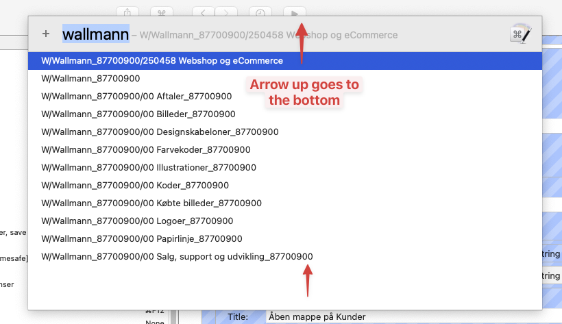 So my workflow is activate the macro. Write a term to filter the list. Use arrow keys to find the correct item. Press enter to open the folder.